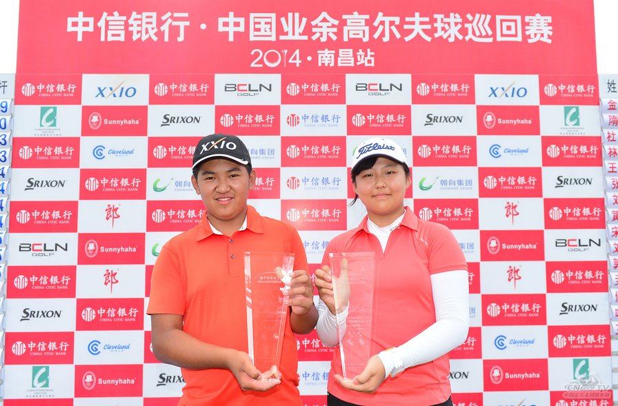 北京时间5月29日,2014中信银行中国业余高尔夫球巡回赛南昌站在庐山国际高尔夫球会结束三轮的比赛,男子组孙庄主保持第二轮的优势,领先孙艺成1杆夺得冠军,女子组金蔓一路领先,最终以6杆的优势捧起冠军奖杯。