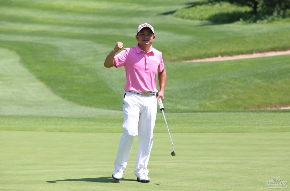 本轮比赛四位球员均在4号洞一个5杆洞成功射下老鹰。“4号洞是个“左狗腿”,距离相对来说不是很远,只要一号木的距离足够抓鸟的机会就会很大。我的球第一落点距离果岭200码,又轻微下坡,我选择5号球道木杆攻果岭,眼看着球就要进洞,结果停在洞口边上1码的地方,顺利捕获一直鹰。”本次表现同样出色的陕西球员李涛说。