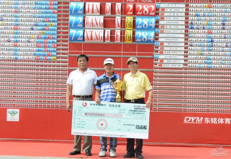 在决赛轮,握有3杆领先优势的河北球员邢建福在第4洞和第5洞连续交出7杆,很快退出冠军争夺圈。最终的竞争变成金大星与王煦之间的对决。两人的竞争非常激烈,经常不断交换着领先的位置。金大星在第4洞和第5洞连续抓下小鸟。而王煦也还以颜色,在第5洞抓下小鸟。两人你追我赶的态势,在第9洞实现了转折。在这个五杆洞,金大星一杆将球开到距离旗杆180码的位置,第二杆他将球攻到果岭右边距离洞杯8码的位置,他精准的切击让他拿下了一记荡气回肠的老鹰球。这让他来到了单独领先,但在第13洞出现的3推,却又让王煦反超。但一直在寻求职业首胜的王煦,在第16洞开球出现失误,造成球遗失,他用了5杆才将球攻上果岭,最终,在这个洞吞下双柏忌。金大星再次获得1杆领先。继而,王煦在第17洞,又错过一记1码的保帕推击,而金大星则在这个3杆洞保平标准杆。两个洞下来,形势就实现了大逆转,金大星从落后1杆变成领先2杆。赛后,金大星表示:“在第18洞的发球台,我就已经知道,这个冠军是我的了。毕竟,第18洞相对比较简单,我采取稳健的策略,在这个洞保帕就能夺冠。”他将这一策略执行的非常好,最终,他在这一洞轻松保帕。金大星表示:“黄文诚在最后两轮帮我背包做球童,他为我最终夺冠提供了很大的帮助。四轮下来,我才遗失2个球。在这个挑战性极高的山地球场,这样的发挥已经很理想了。连续夺取胜利的感觉非常美妙,赛前我也没有想到我能发挥这么好,明年我争取回来卫冕。”