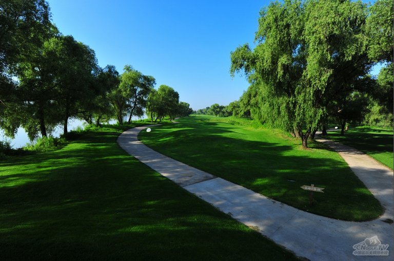 邹雅杰:辽阳太子河球场最有特色的球洞为前九的7号洞,黑T为610码,是最长五杆洞,是一个过水的球洞,第一落点要求球员开距离为230码以上,方向必须精准,如有偏差就会落水。