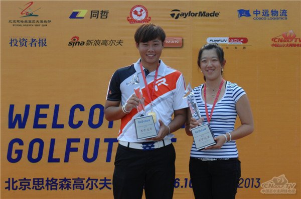 下午的颁奖仪式上,国家体育总局小球运动管理中心副主任、中国高尔夫球协会副秘书长王延梅给两位冠军颁发了奖牌及奖品。同时,张进和周佳怡还当选2013希望赛北京站“希望之星”,他们两人也是男女两组单轮最佳的获得者:张进的68杆和周佳怡的69杆。