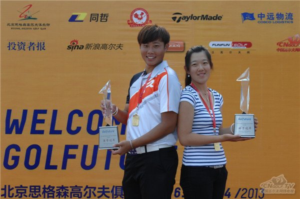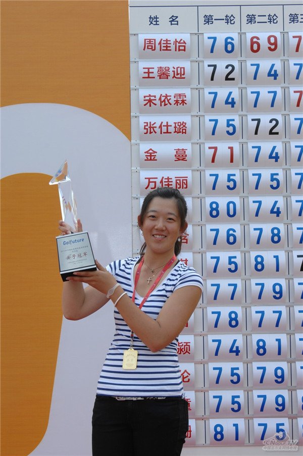 希望赛讯 6月14日下午14时许,2013年中国业余高尔夫希望赛北京站顺利收杆。女子组率先完成比赛,周佳怡以76-69-70总杆215杆的红字成绩独占鳌首,获得个人希望赛首冠。无巧不成书,周佳怡男友王曦晨随后也在决赛上锁定胜局,以一杆优势力克实力强劲的张进,70-69-72总杆211杆的成绩使他成为了继关天朗之后的第二个希望赛“三冠王”。一对情侣同场折桂,这也成为了希望赛历史上的一段佳话。