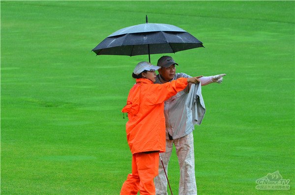 绵绵细雨挡不住球友们的高尔夫激情,雨中激战,毫不畏惧,更有球友非常享受在雨中比赛的别样感觉。雨水打湿球道,非常不利于挥杆,特别对业余选手来说更是一次极大的挑战,但会员们没有因此而止步不前,克服种种困难,愈挫愈勇。“巾帼不让须眉”,女球员也不甘示弱,冒雨比拼,有的球员穿着雨衣在球场坚持,有的球僮为球员们撑伞打球,更有甚者漫步在雨中,淋湿了头发、衣服,却挡不住球友们的打球热情。
